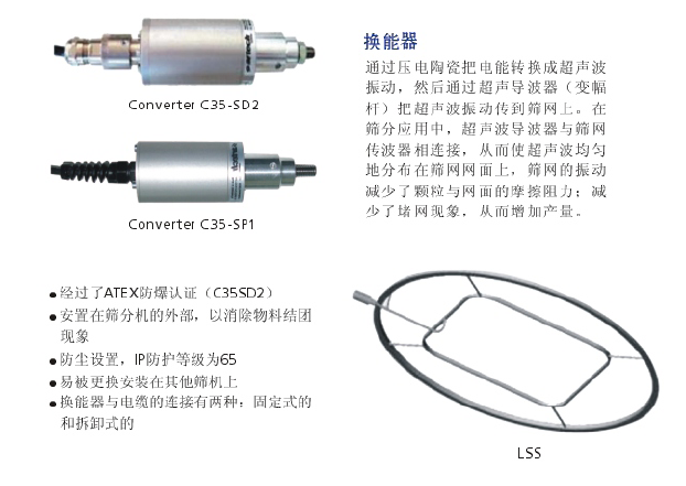 超聲波篩分系統(tǒng)是一種簡單實(shí)用、可靠的篩分系統(tǒng),是當(dāng)前解決振動篩在篩選過程中網(wǎng)孔堵塞的方法。并且可增加過篩效率2-3倍之間。廣泛應(yīng)用于食品、制藥、冶金、化工、選礦等要求精細(xì)篩分過濾的行業(yè),篩分過濾精度高,有效的解決因團(tuán)聚、靜電、強(qiáng)吸附性卡網(wǎng)、堵網(wǎng)等難題,是國內(nèi)篩分行業(yè)的一項(xiàng)重大技術(shù)突破。